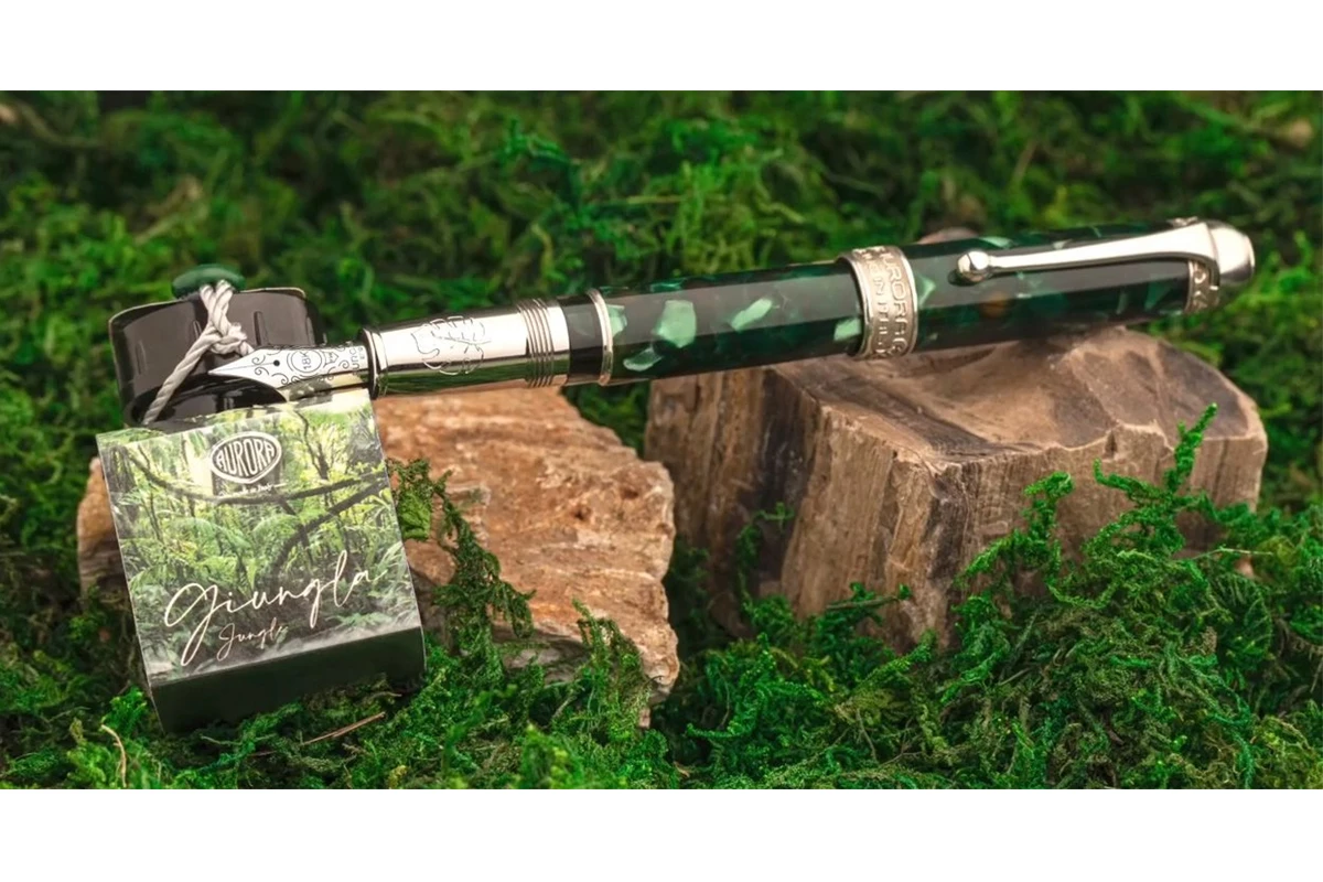 De Ambienti Jungle weerspiegelt de diversiteit aan donkergroene bladeren die in de jungle te vinden zijn. De pen komt met felgroene inkt om de rijkdom van de jungle natuur op papier vast te leggen.