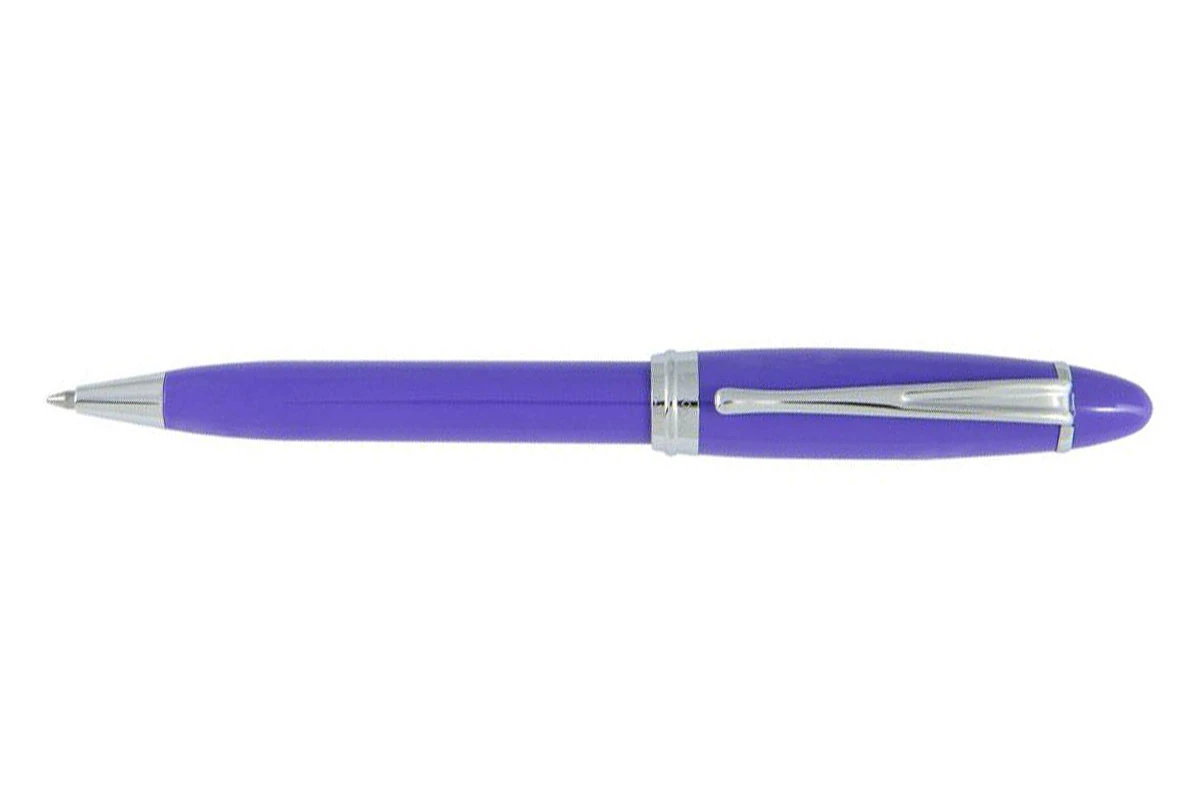 De Aurora Ipsilon balpen heeft een kunsthars houder met paarse lak en zilverkleurige accenten.
