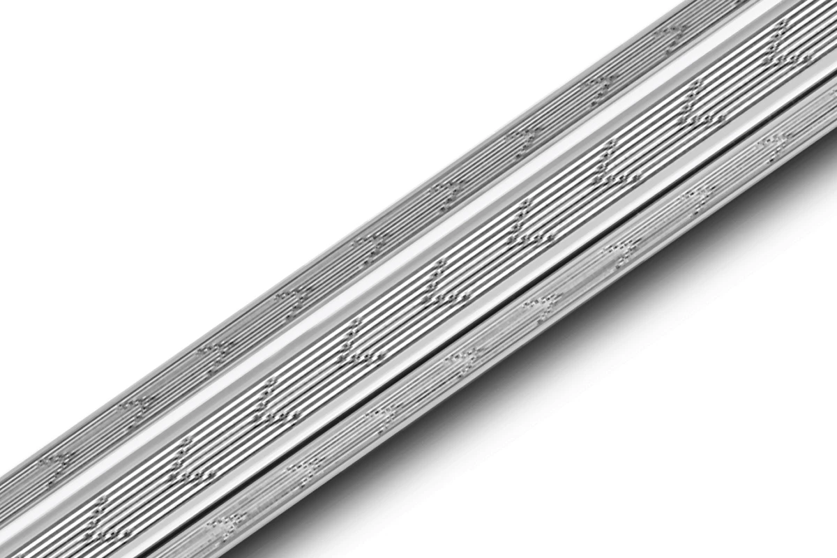 Een visueel ritmische reeks lijnen zorgt ervoor dat de motieven die fijn gegraveerd zijn op het lichaam van dit iconische model ongelooflijke perspectieven creëren, die subtiele variaties afhankelijk van de hoek van waaruit het wordt bekeken. Als een caleidoscoop wordt de zeshoek een kubus en onthult het oppervlak eindeloze mogelijkheden.
