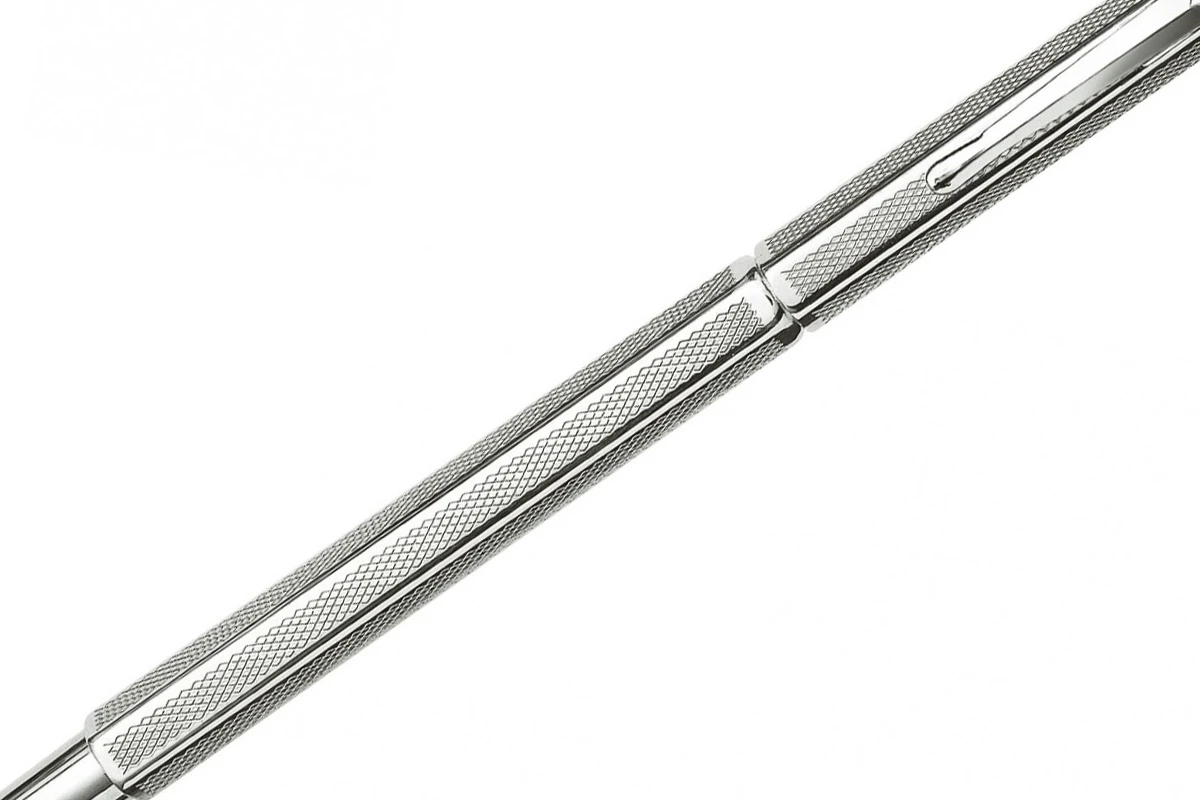 Trouw aan zijn naam, brengt de Ecridor Retro een eerbetoon aan de eerste Caran d’Ache mechanische potloden, gemaakt van edele metalen sinds 1947. De guilloche is gemaakt van zuigtabletten en staat symbool voor vintage modellen, afgewerkt met palladium plating.