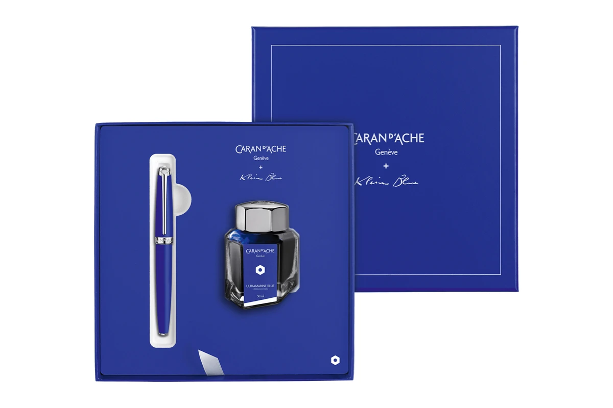 De pen wordt geleverd met een ultramarine inktpotje van Caran d’Ache.