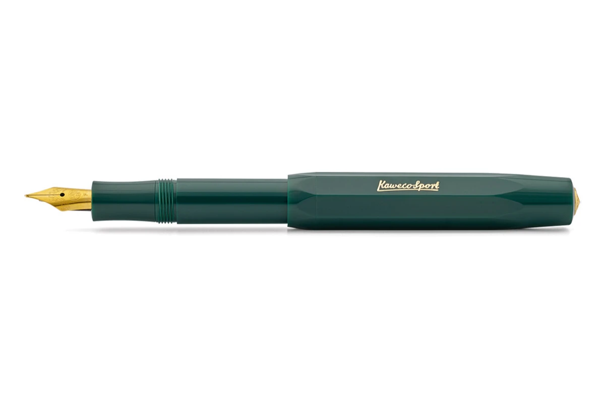 De hedendaagse Classic Sport vulpen is geinspireerd op deze historische kenmerken. De serie bestaat uit klassieke en historische kleuren. Het schrijfinstrument valt op door de goudkleurige roestvrij stalen penpunt, het goude Kaweco logo en het goude folie drukwerk.