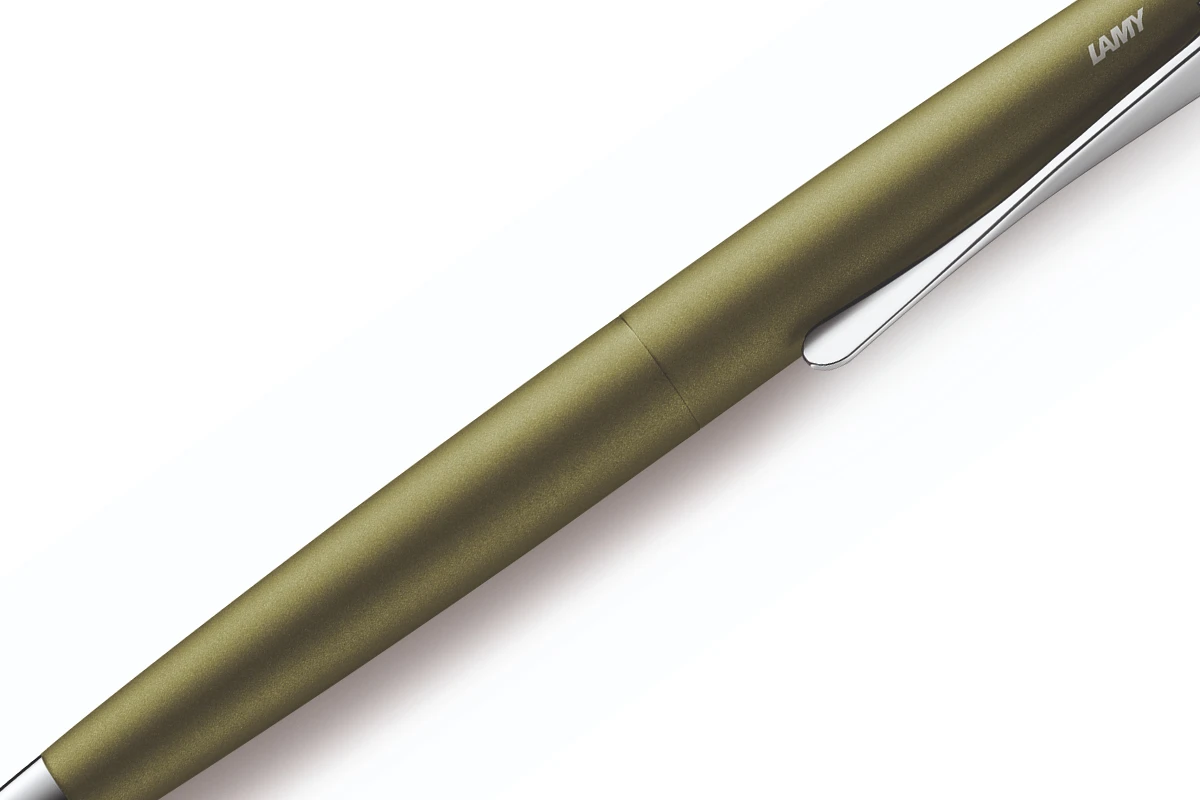 Speciale editie 2022: LAMY studio olijfgroen. De LAMY studio laat op elegante wijze zien hoe dicht design en kunst bij elkaar kunnen liggen.