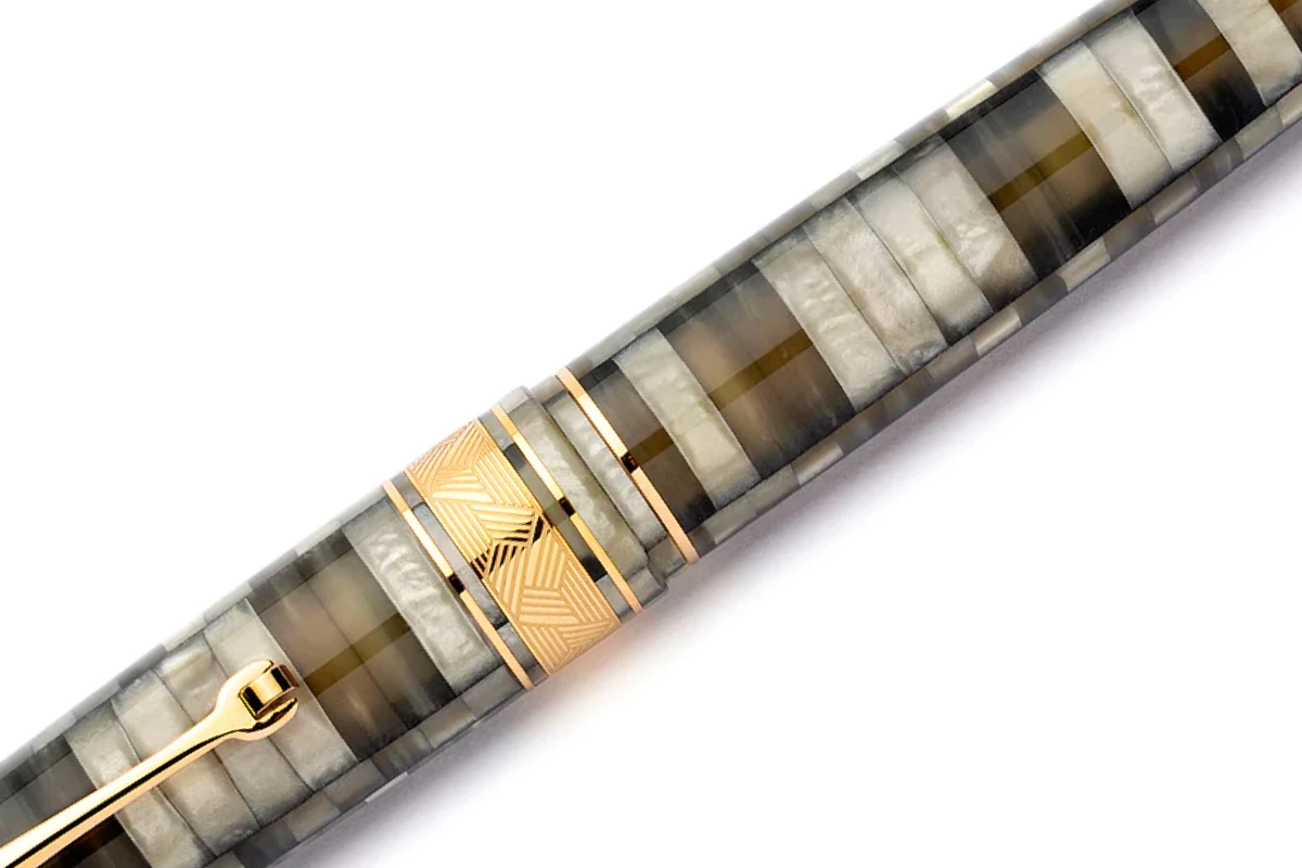 Handgemaakt in Italië door Leonardo Officina Italiana, beschikt de vulpen over een betoverend mozaïek patroon geïnspireerd door de zandstranden en warme tinten van de Middellandse Zee. Het mozaïek lichaam toont een harmonieuze mix van aardse beige, tan, en bruine tinten, het creëren van een tijdloze en verfijnde esthetiek. De dop toont trots het iconische Leonardo logo, wat de toewijding van het merk aan uitmuntendheid en fijn vakmanschap symboliseert.