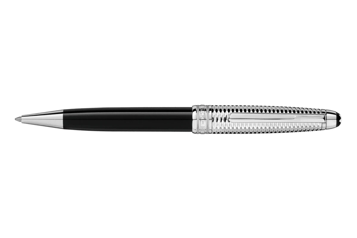 De dop van het schrijfinstrument is geplatineerd en gegraveerd met een geometrisch motief, dat een optisch effect creëert en er bij iedere lichtval anders uitziet. Het lichaam van de pen is gemaakt van kostbare zwarte hars. Op de bovenkant van de dop bevindt zich het karakteristieke logo van Montblanc.