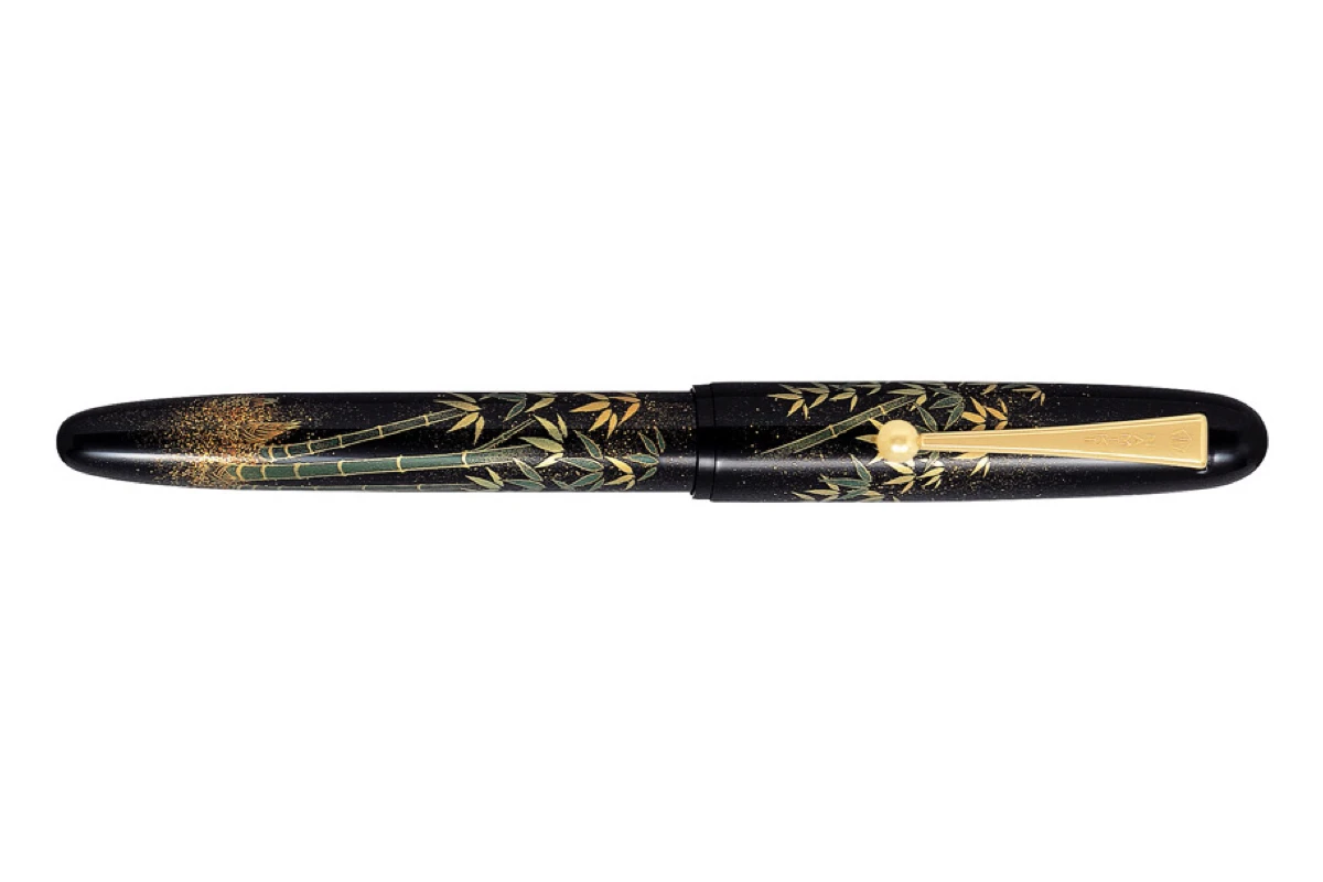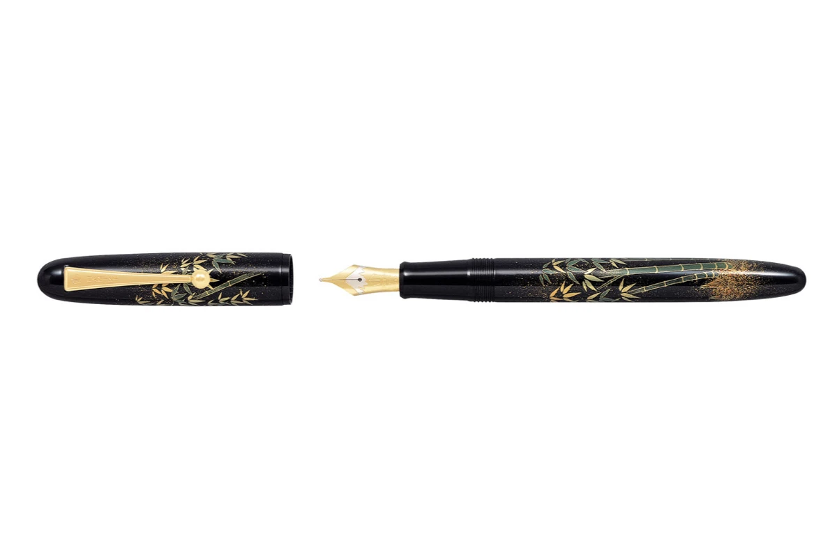 De schoonheid van bamboe en de finesse van zijn bladeren komen bijzonder goed tot hun recht in de delicate techniek Togidashi Maki-e, de oudste techniek. Als de tekening klaar is, wordt deze bedekt met een dunne laklaag, die de lijnen volledig maskeert. Door het oppervlak fijn te polijsten met houtskool komt de tekening weer tevoorschijn, waarbij het talent van de kunstenaar ervoor zorgt dat het oppervlak glad blijft zonder dat er een uitsteeksel te bespeuren valt.