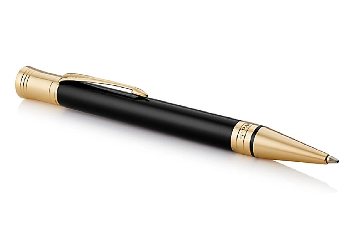 De pen is delicaat gemaakt van hard, fluweel zwart edelhars afgemaakt met hoog onderscheidende 23K vergulde details.