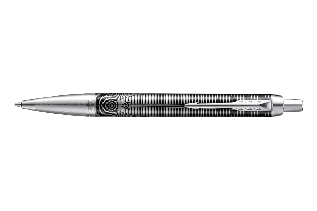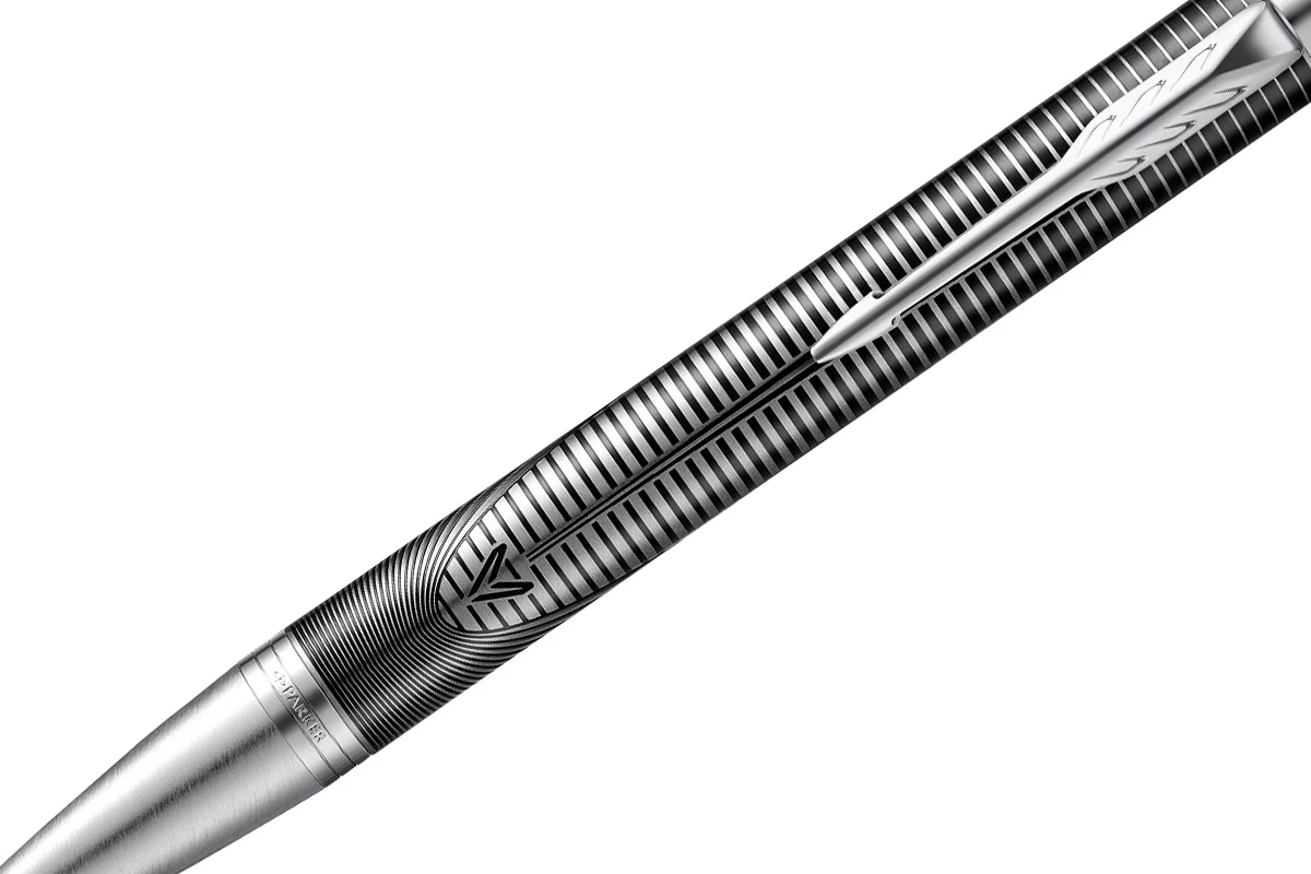 The IM Special Edition Metallic Pursuit is inspired by the unlimited opportunities which direct us towards our purpose. The cap and barrel, emblazoned with the energetic trajectory of growth, remind us that our path towards success is a unique journey that only we as individuals can take. The dynamic and determined line pattern of the stainless steel, black lacquer barrel, the etched, black shine-varnished cap, and the iconic trademark arrow clip, steer our pathway to success in a tangible and clear direction. This pen is carefully finished to the high standard emblematic of Parker’s expertise and craftsmanship.