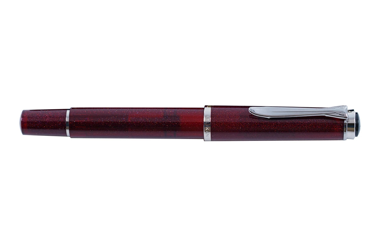 Deze vulpen heeft een draaidop en bevat de kenmerkende Pelikan clip.