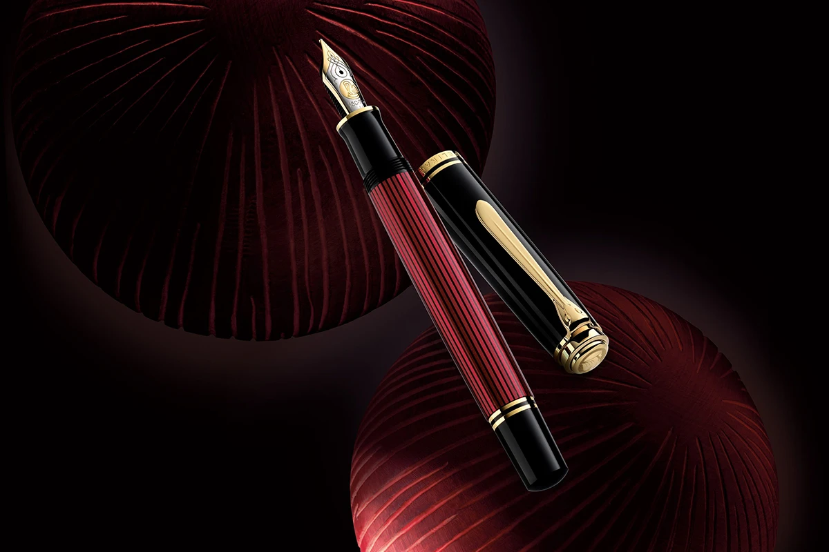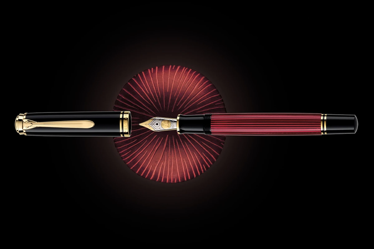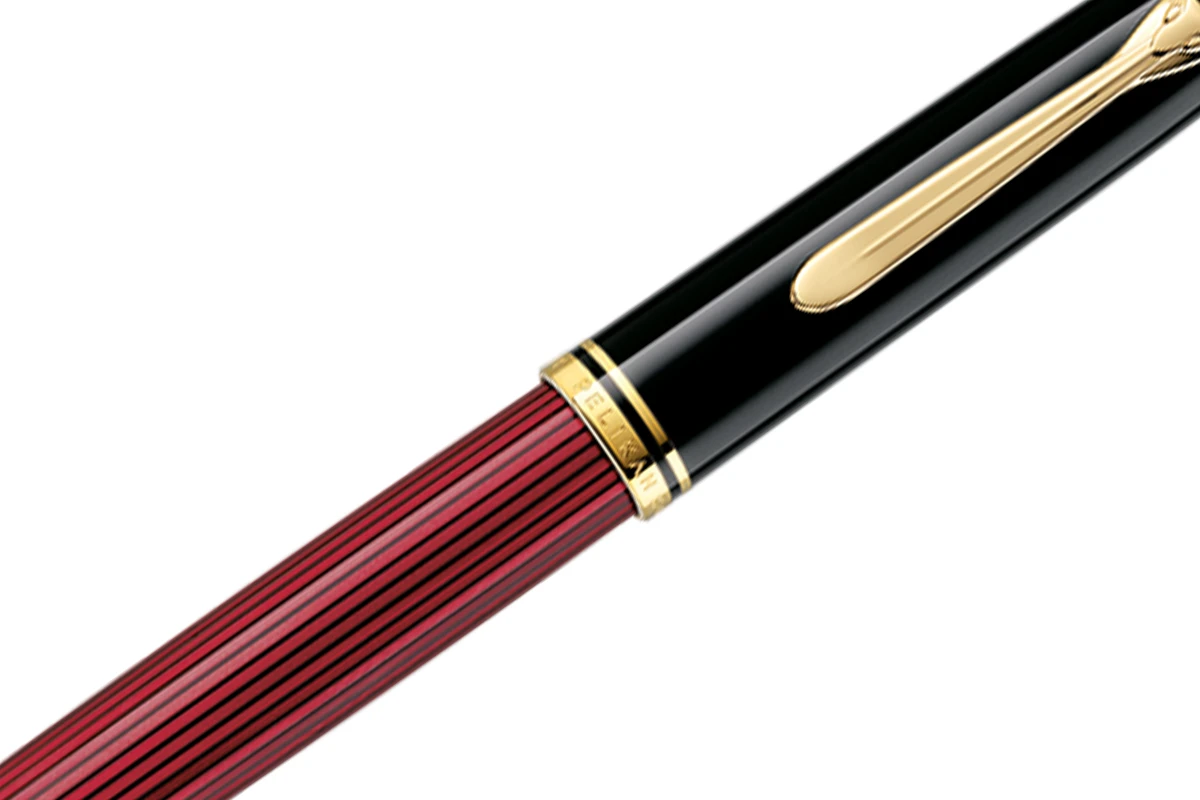 De rijke rode tint in het gestreepte patroon van het lichaam van de pen harmonieert wonderwel met de elegante diepzwarte componenten en wordt perfect aangevuld door de gouden versieringen. Deze klassieker is nu terug in Pelikan’s standaardassortiment.