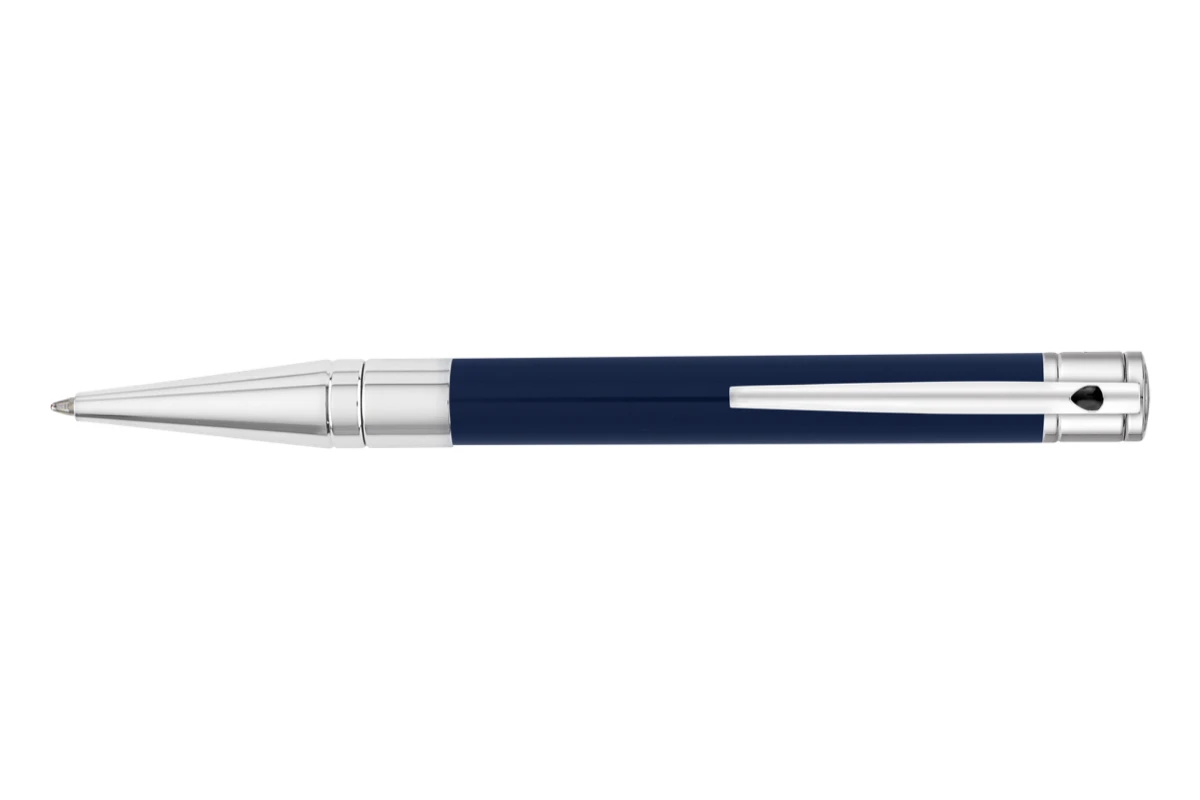 De pen is gemaakt van matte blue lak en chromen details waarin het Dupont wapen zichtbaar is.